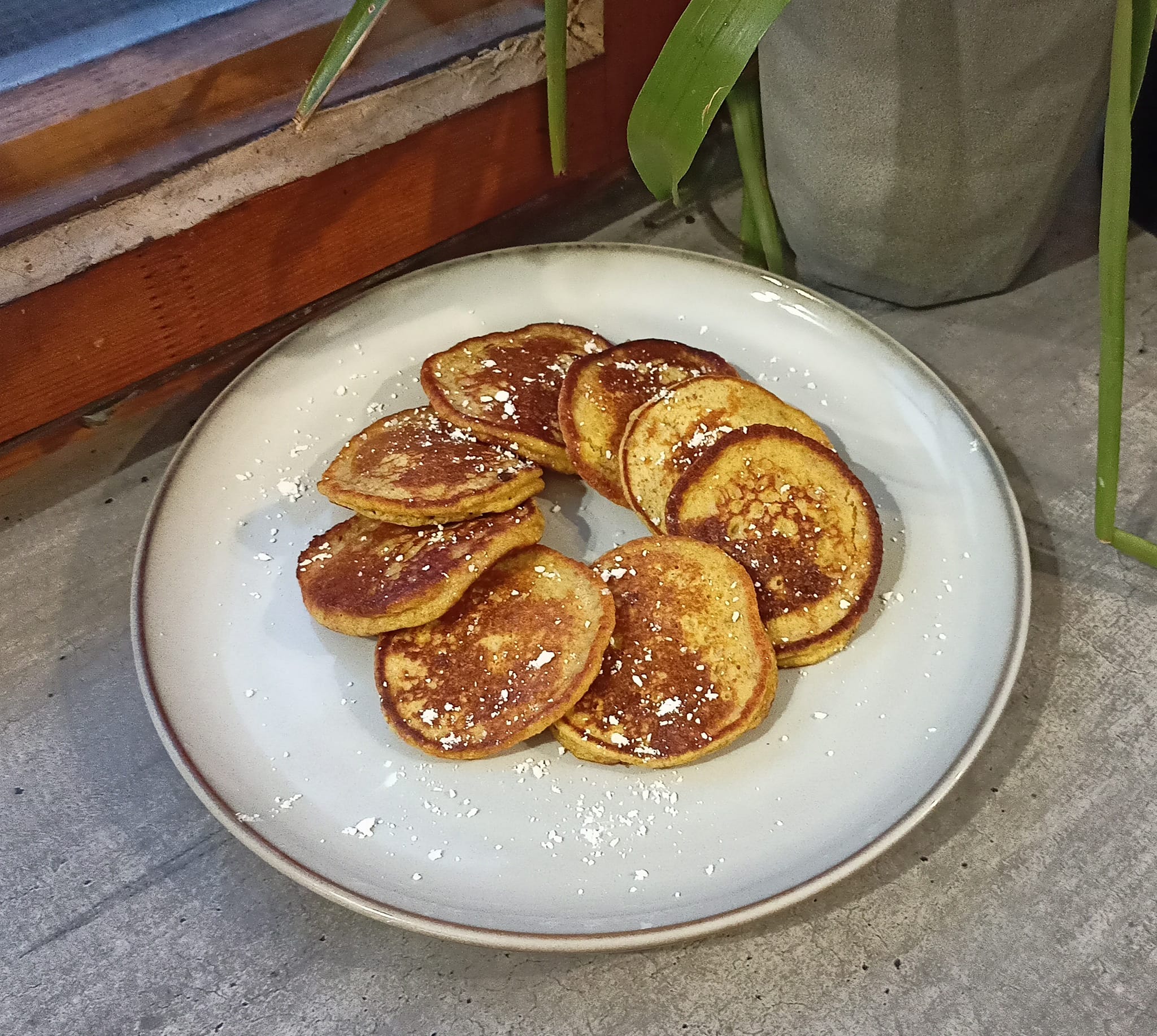 Vše dáme do misky a rozmixujeme tyčovým mixérem. Dáváme po lžíci na pánev (proto jsou tak malé). Smažíme na mírném plamenu než mají tu správnou barvu.